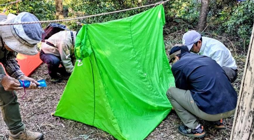 14:30〜15:30 【実技】ツェルトやサバイバルシートの使用方法